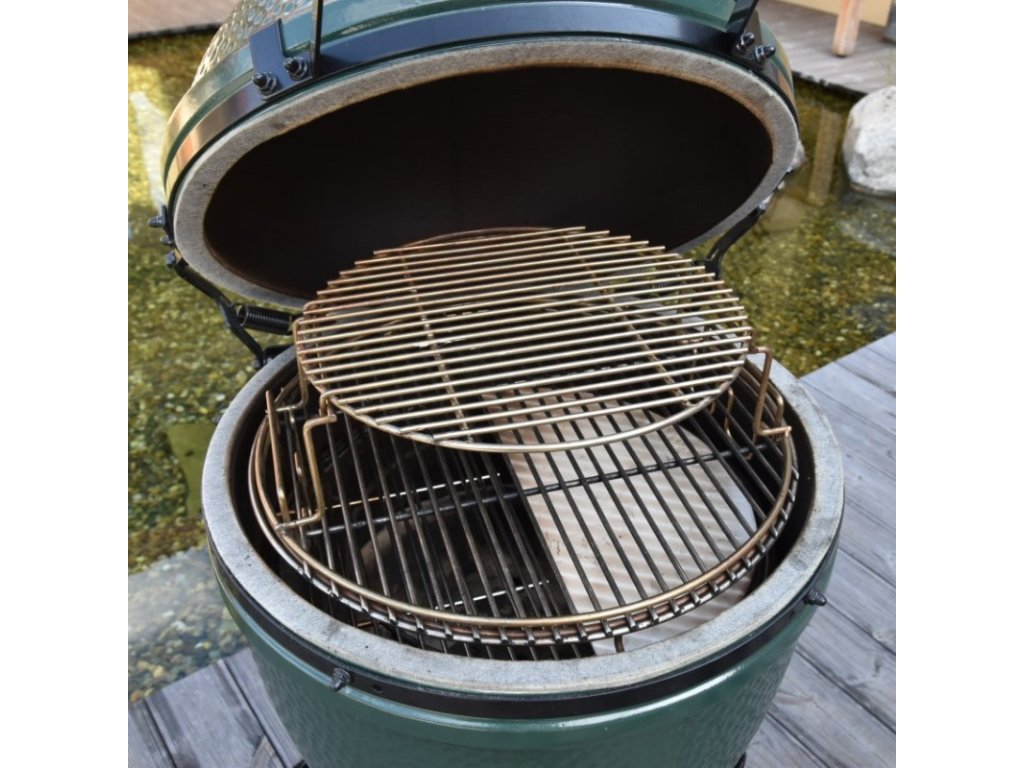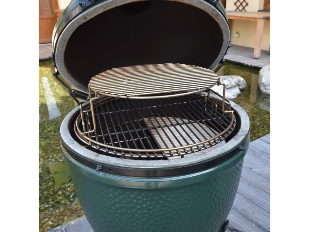 - Nerezový víceúčelový rošt určený pro keramický gril Big Green Egg Large