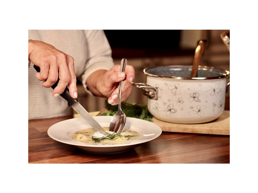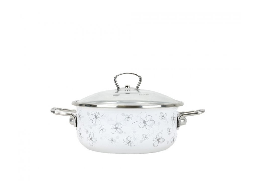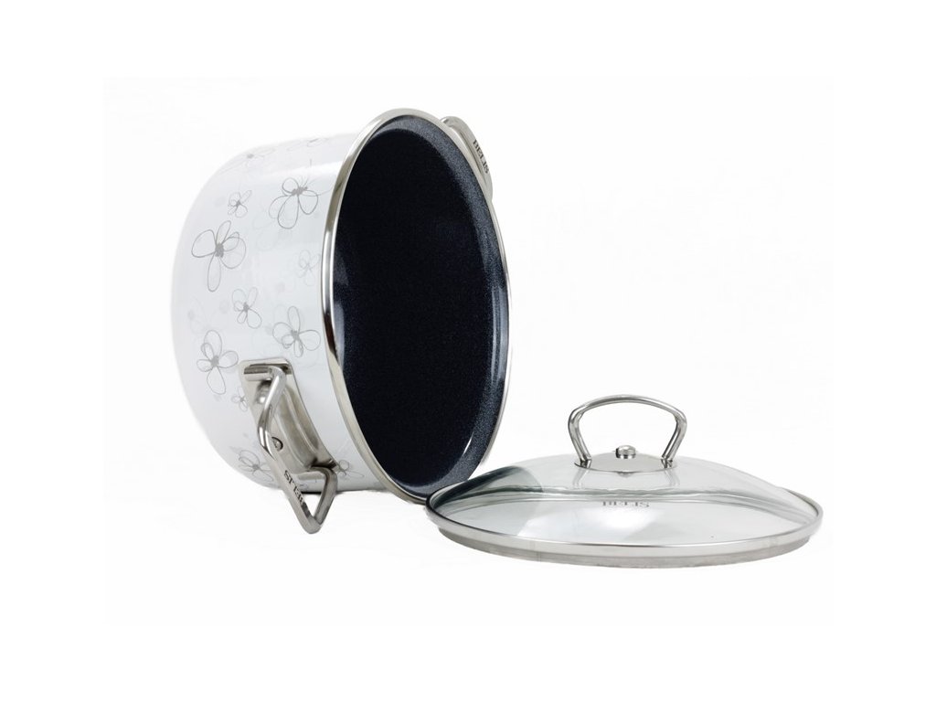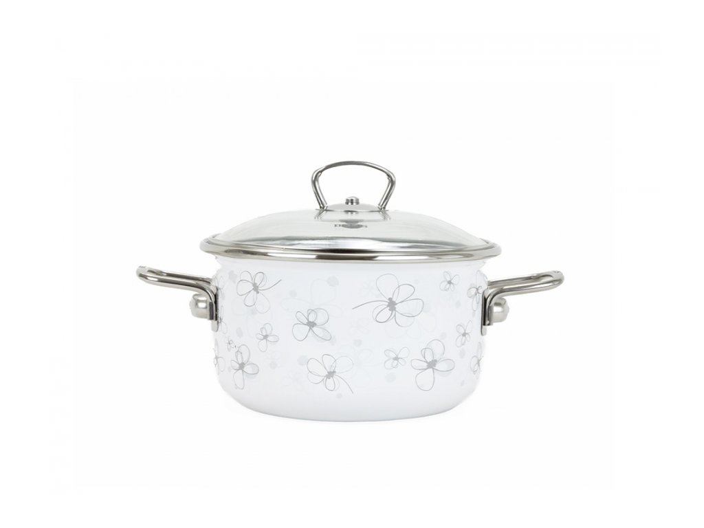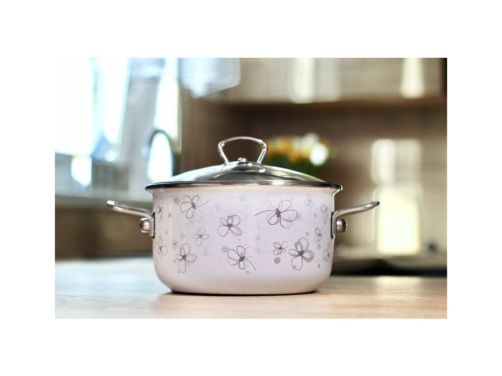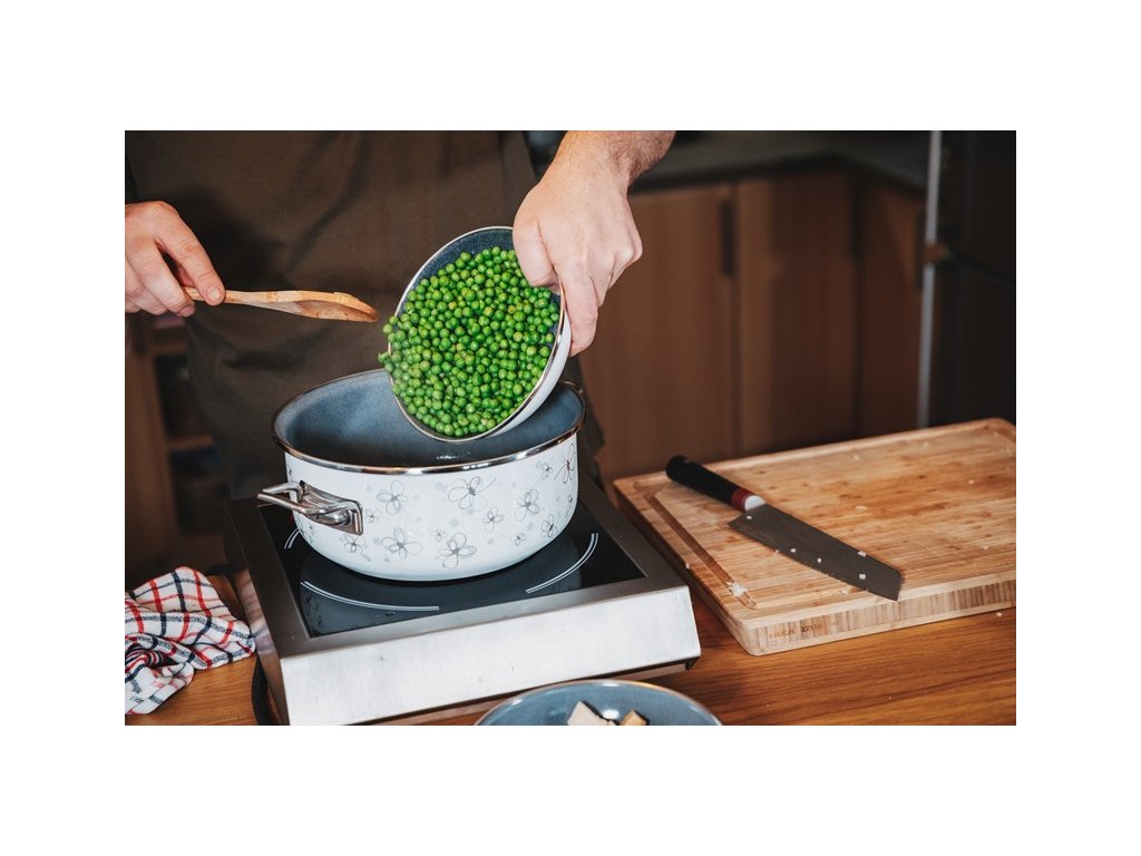 PREMIUM bílý – naše nová řada prémiového smaltovaného nádobí, které se vyznačuje nadčasovým vzhledem, špičkovou kvalitou materiálů a mimořádnou životností.Nová řada se pyšní elegantním bílým designem, kterému vévodí nadčasový obtisk v dekoru květin v jemných šedých odstínech. Výjimečný vzhled, který bude ozdobou každé kuchyně.