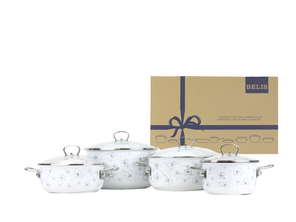 BELIS Sada smaltovaného nádobí PREMIUM bílý 4-dílná s rendlíky