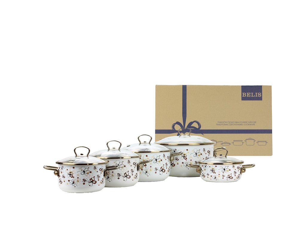 BELIS Sada smaltovaného nádobí PREMIUM krémový 5-dílná