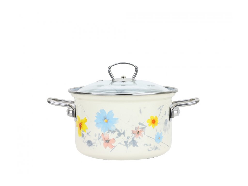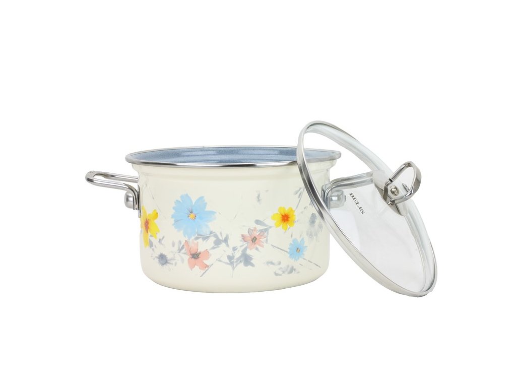 BELIS Smaltovaný hrnec se skl. poklicí MEADOW 18 cm/2,6l