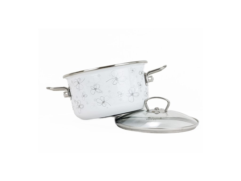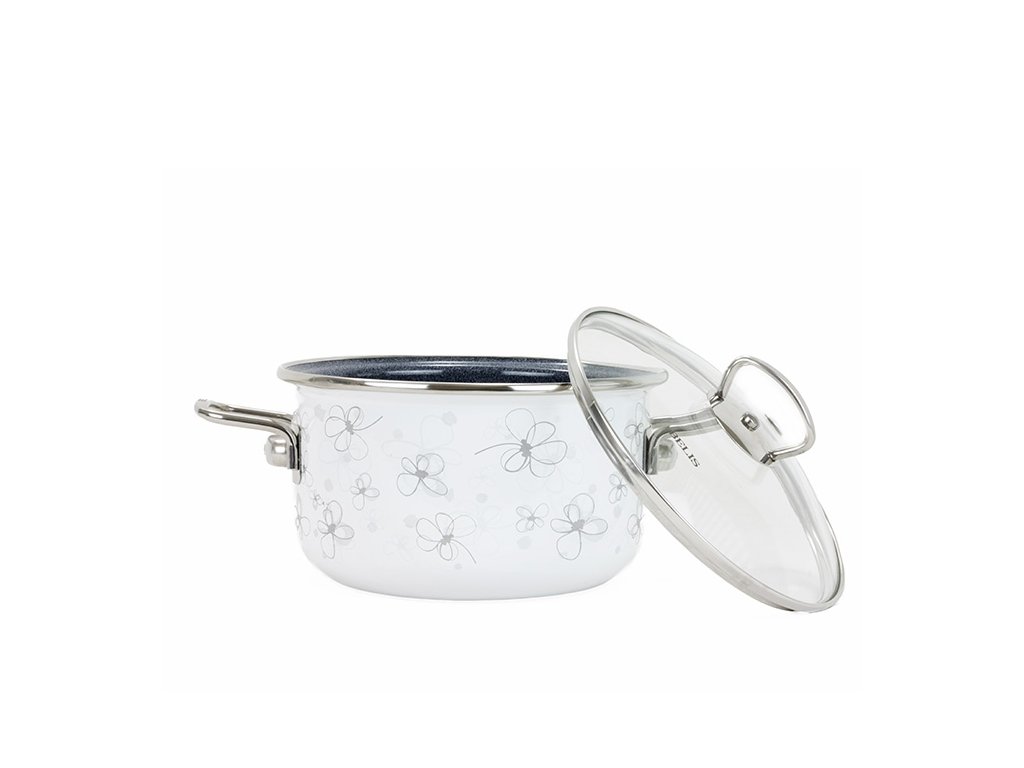 BELIS Smaltovaný hrnec se skl. poklicí PREMIUM bílý 16 cm/1,5l
