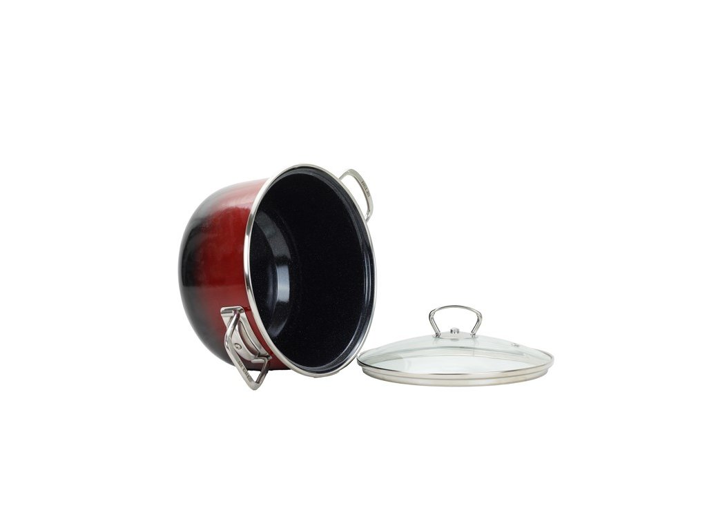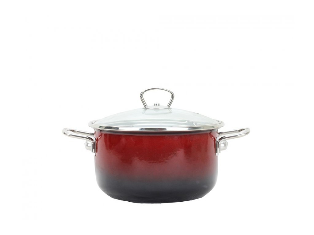 BELIS Smaltovaný hrnec se skleněnou poklicí PREMIUM ombré červený 20 cm/3,5l