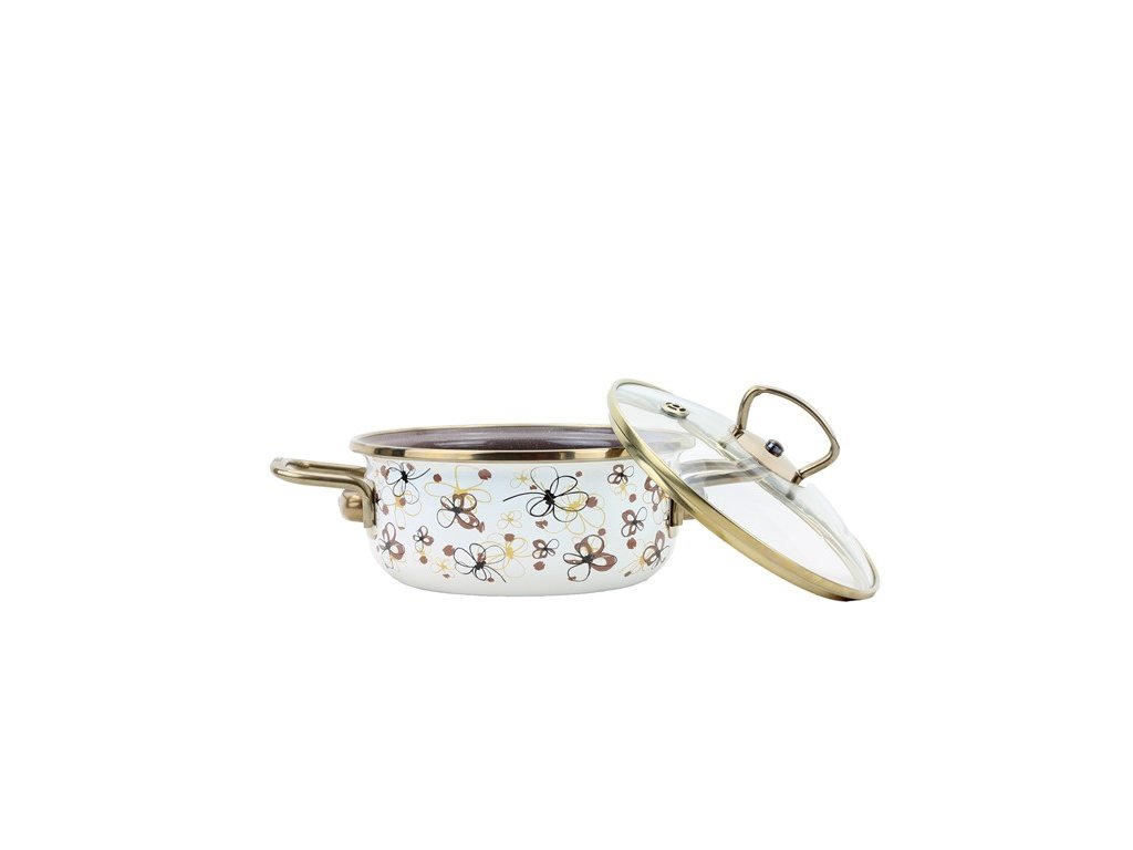 BELIS Smaltovaný rendlík se skl. poklicí PREMIUM krémový 16 cm/1,25l