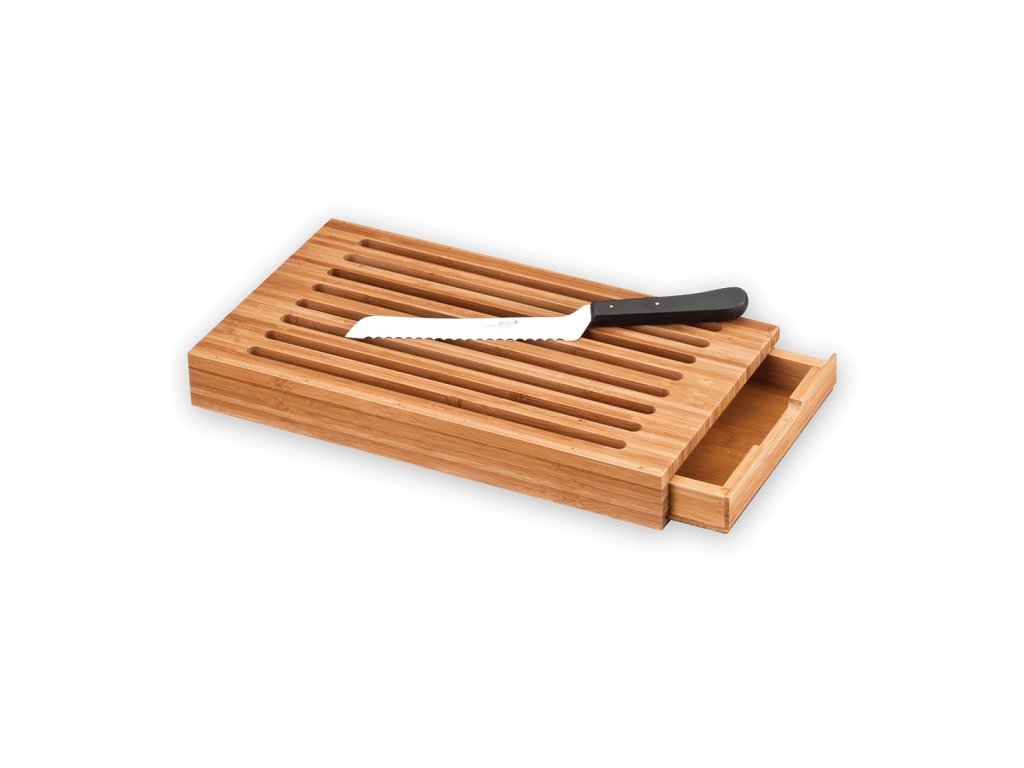 Bambusové krájecí prkénko na chleba s šuplíkem na odpad a nožem na chleba DÉGLON, 41 x 23 x 5 cm