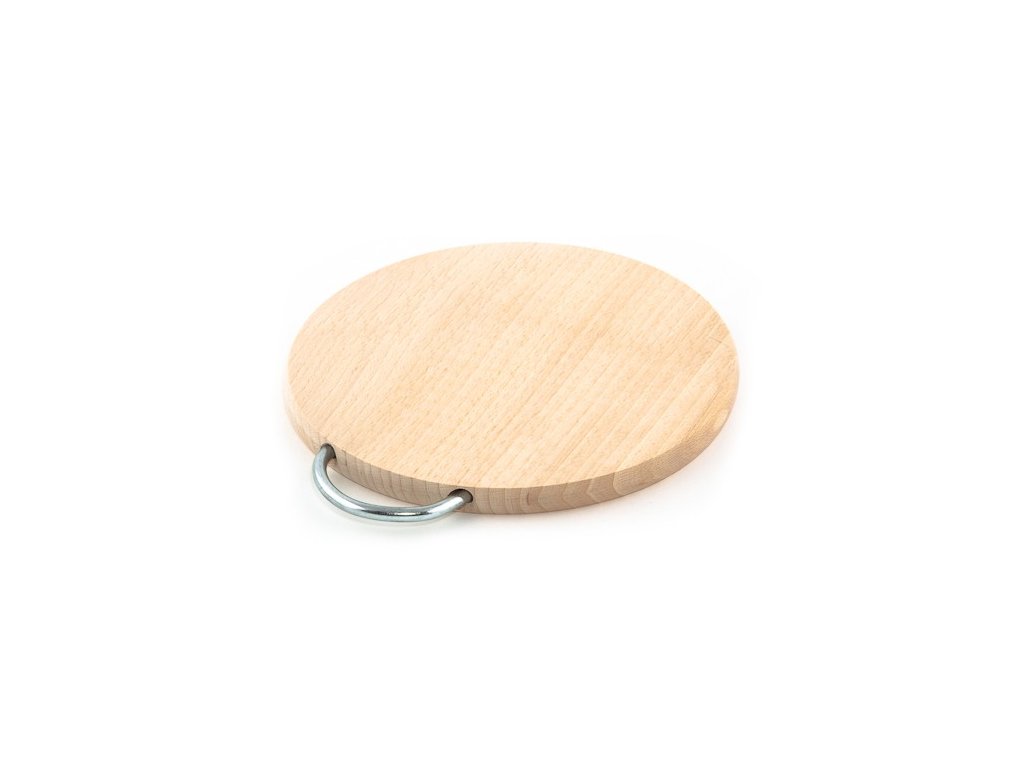 Dřevěné kuchyňské prkénko KOLIMAX kulaté s kovovým držadlem, 20 x 1,6 cm