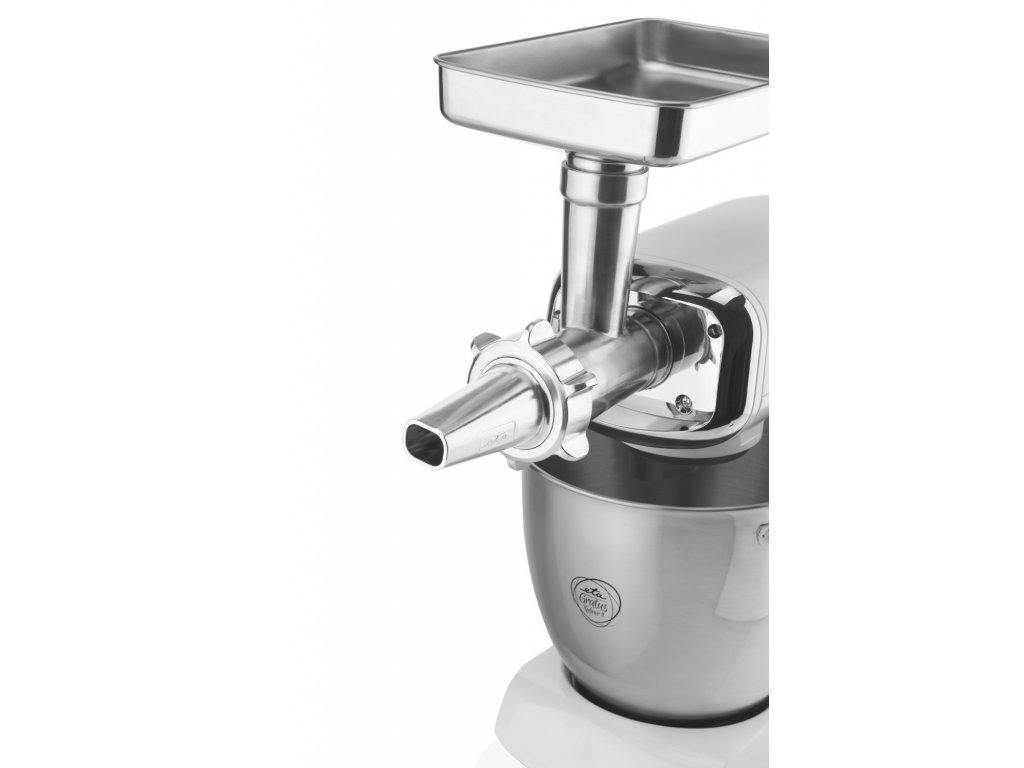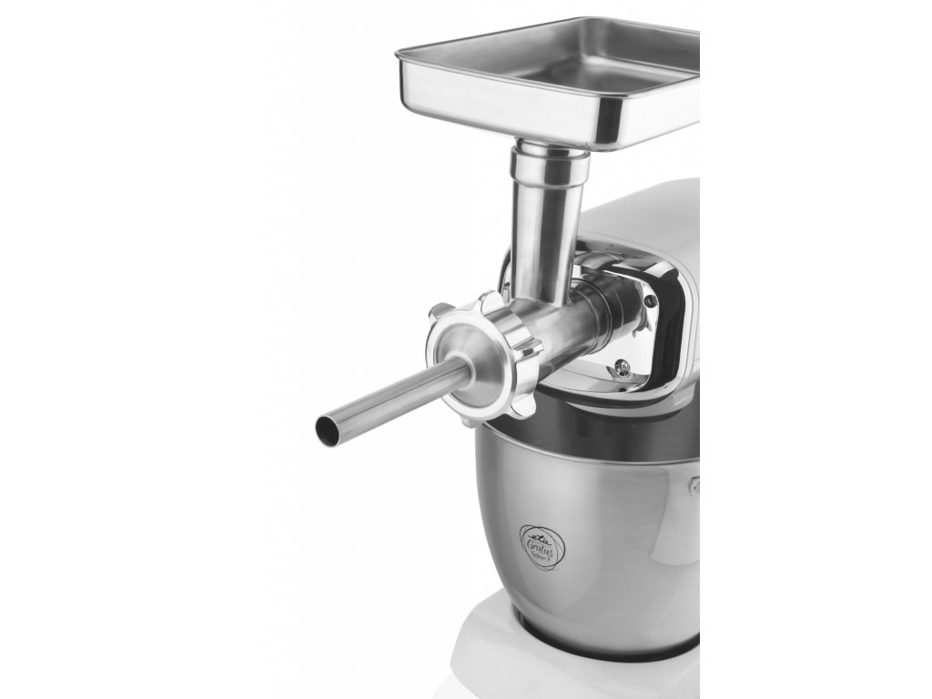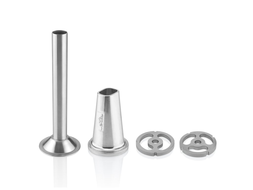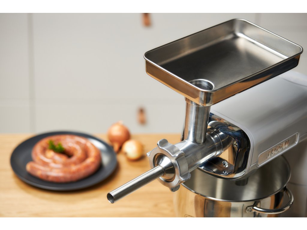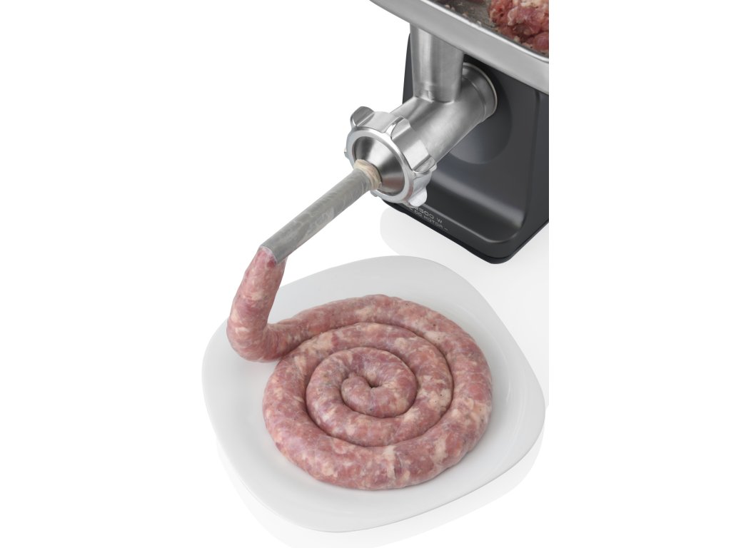 Při mletí masa si můžete zvolit hrubé nebo velmi hrubé mletí, a to za pomocí dvou nerezových destiček. K výrobě uzenin využijete nerezový nástavec o průměru 20 mm. Samozřejmostí je i ochranný kryt pro zajištění bezpečnosti. Nerezové díly můžete mýt v myčce nádobí.