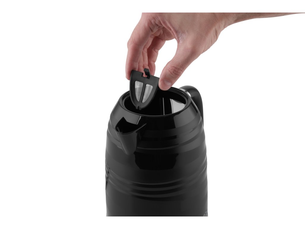 Vyjímatelné filtrační sítko vám usnadní údržbu a uchrání vaše nápoje před vodním kamenem. Stejně praktické je i víko konvice, které můžete celé odejmout.
