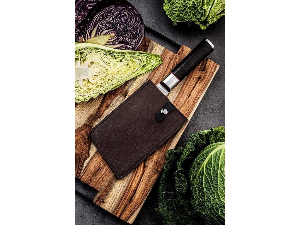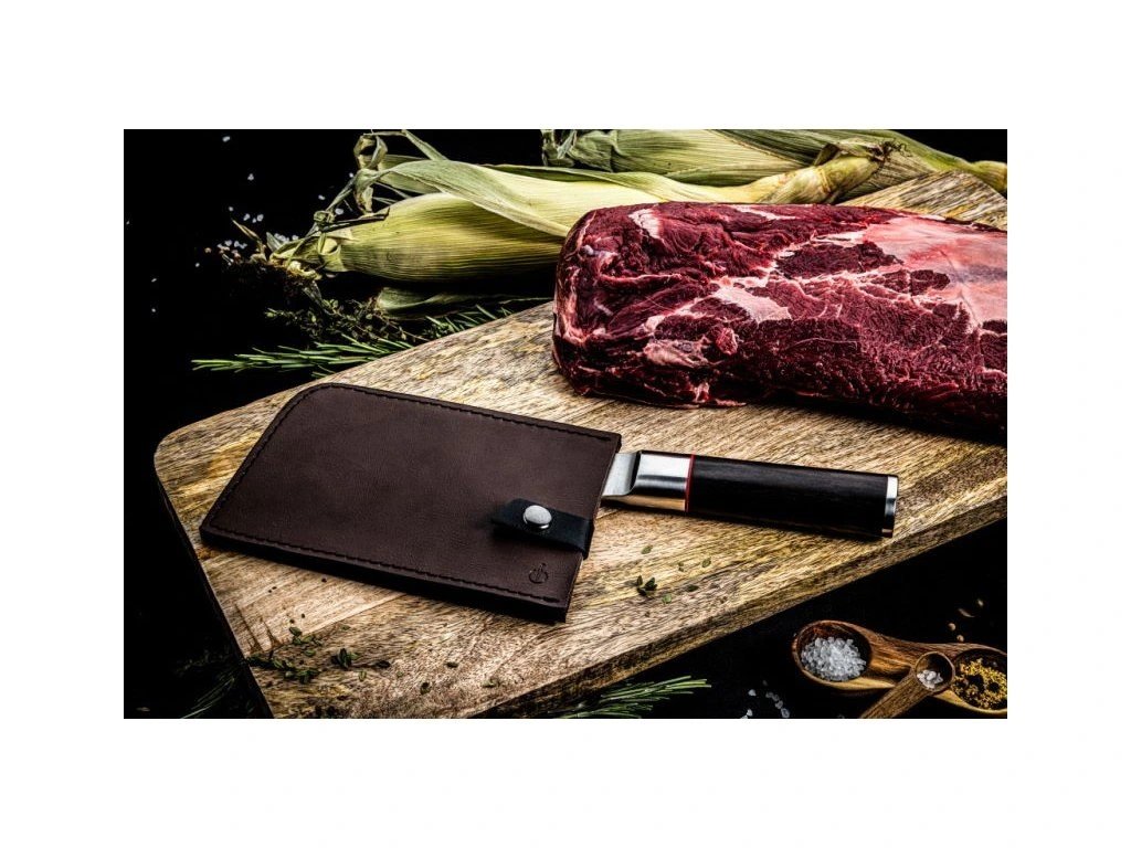 Ochrana, manipulace a údržba nožů jsou velmi důležité. Pro optimální ochranu čepele jsou k dispozici kožená pouzdra pro nože řady Olive, Sebra, VG10, Brute a Intense. Díky syrovému vzhledu hnědé kůže s černými akcenty jsou dokonalým doplňkem každého nože.