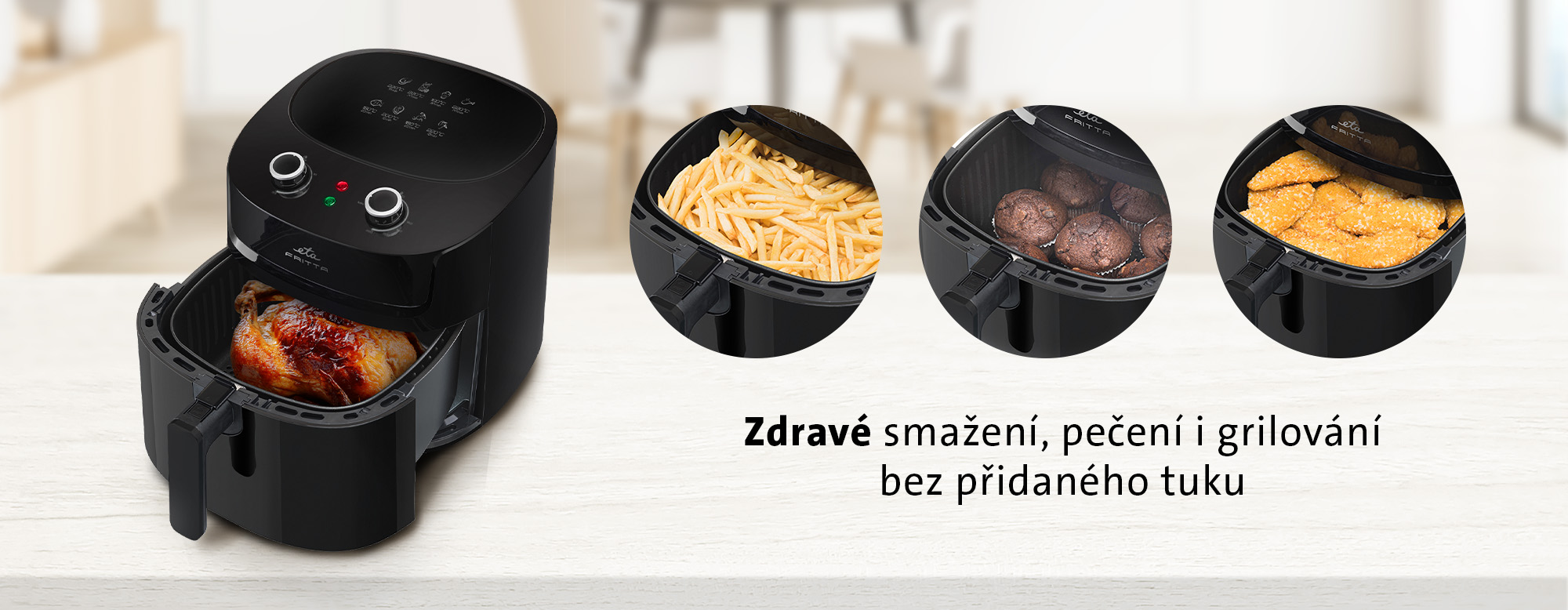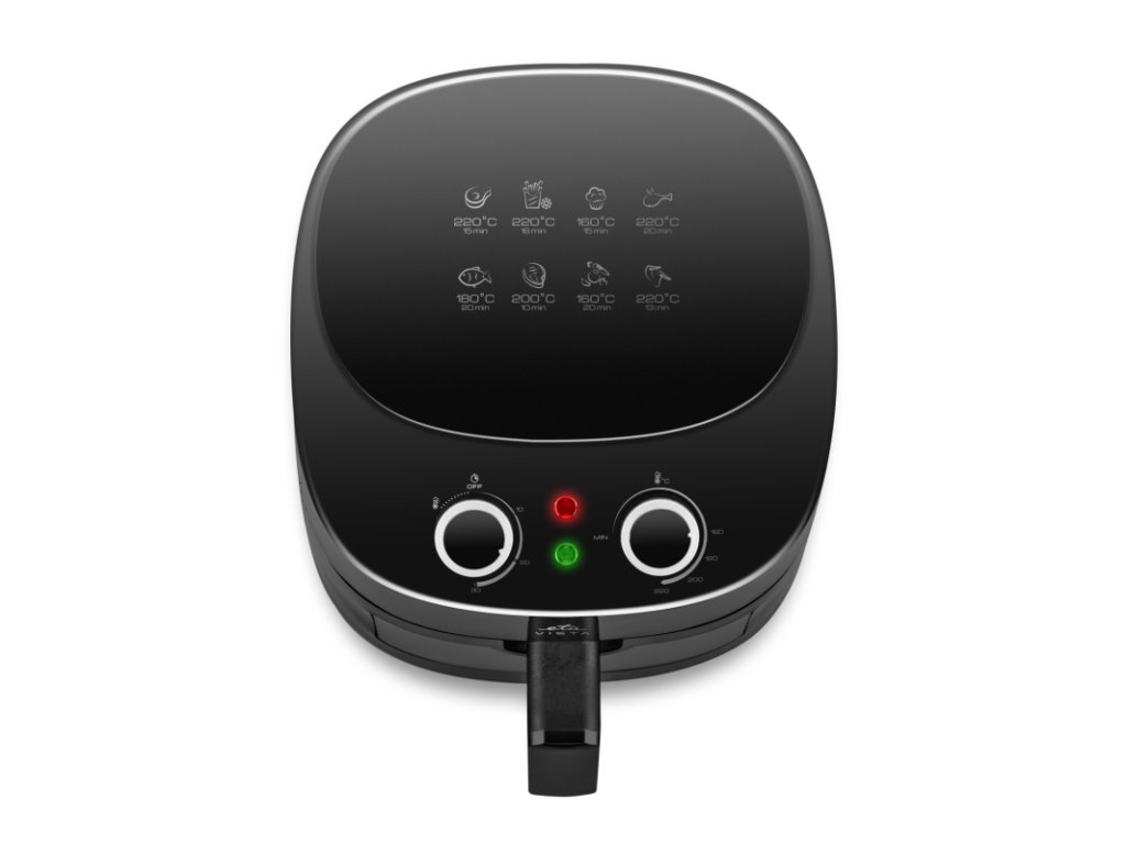 Připravte si oblíbená smažená i nesmažená jídla s ve zdravější verzi, s minimem přidaného tuku! Horkovzdušná fritéza ETA Fritta smaží jídlo pomocí horkého vzduchu, který proudí rovnoměrně uvnitř fritézy. Výsledkem jsou pak rovnoměrně usmažené řízky, hranolky, krokety i zeleninový falafel.