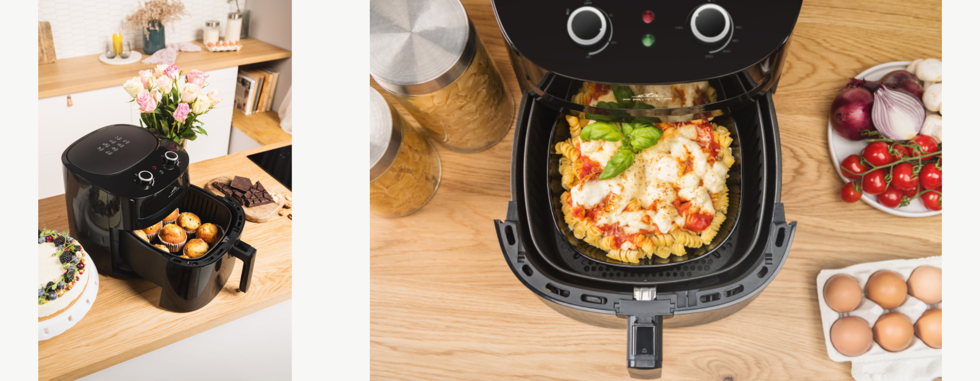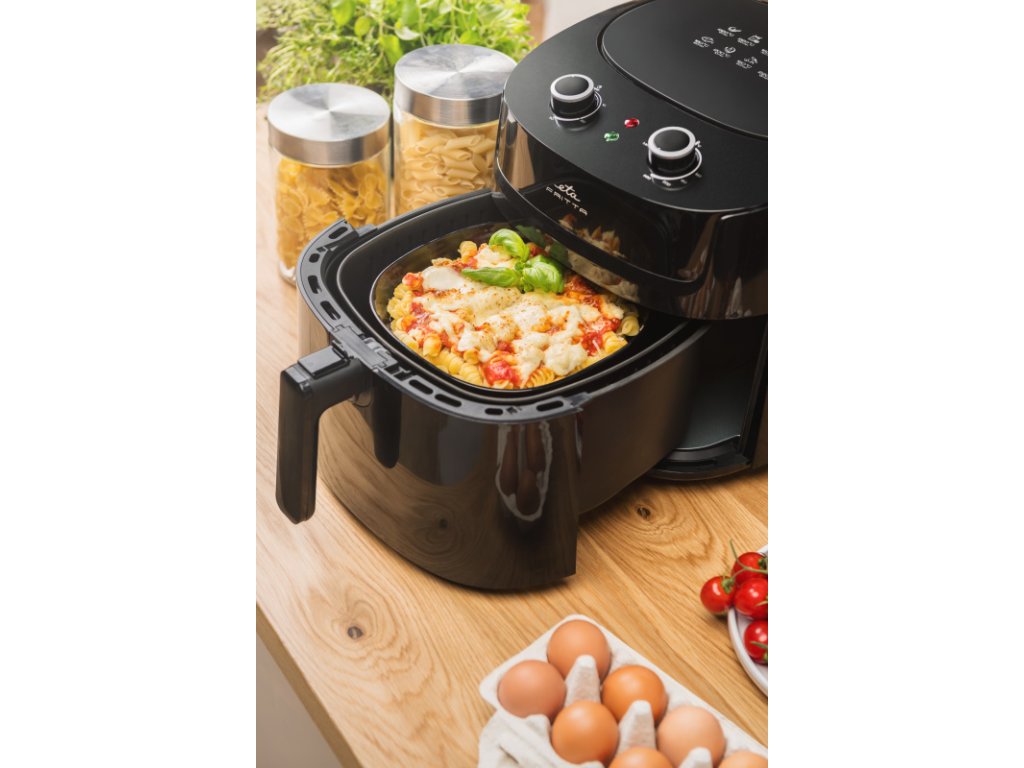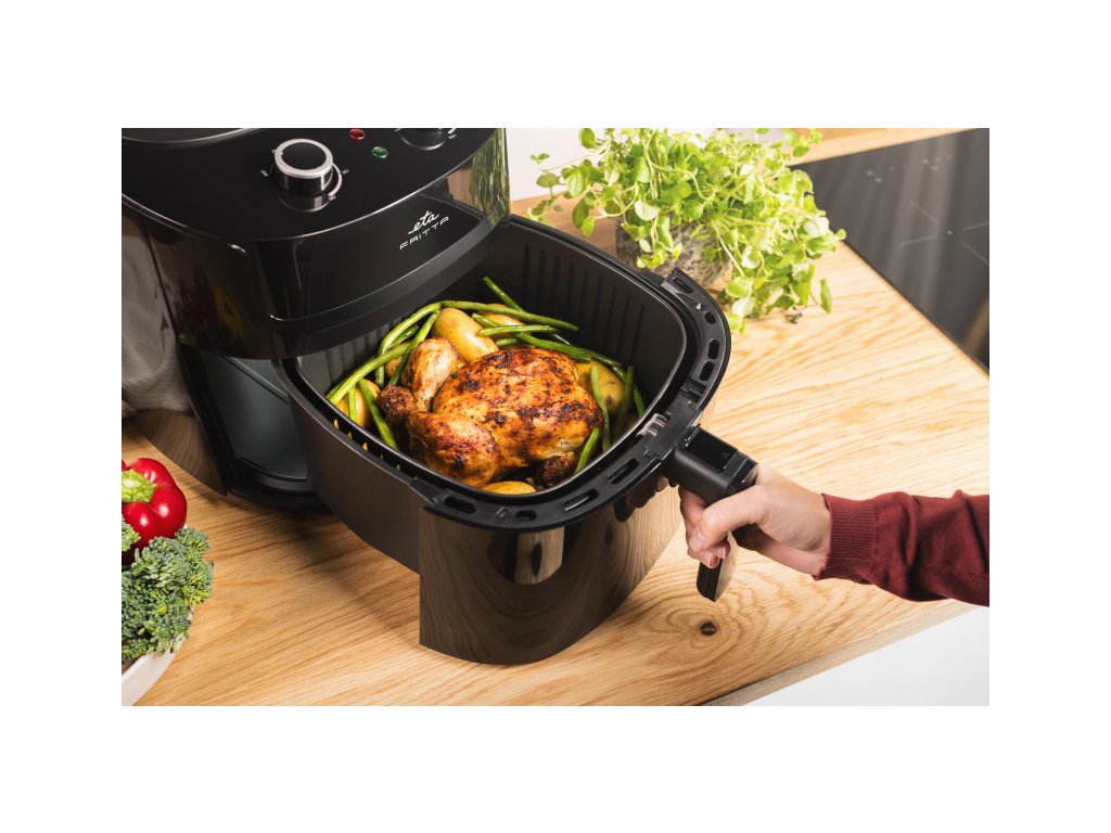 Příprava jídla s horkovzdušnou fritézou ETA Fritta je nejen zdravější, ale také levnější. Díky XXXL nádobě lze fritézu použít jako menší horkovzdušnou troubu, ale s až o 50% nižší spotřebou elektrické energie oproti klasické troubě.