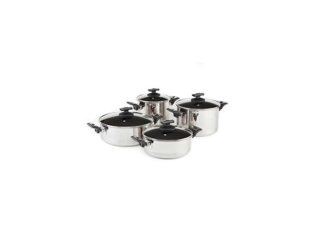 Tyto hrnce a rendlíky včetně poklic z pevného temperovaného skla můžete použít v troubě až do 150 °C. Skleněné poklice s parním ventilem pro odvod páry jsou opatřeny konstrukčně důmyslnými drážkami, jimiž odtéká voda po mytí. Nádobí má elegantní designové úchyty ze speciálního plastu a přerušené tepelné mosty, proto při používání nepálí.