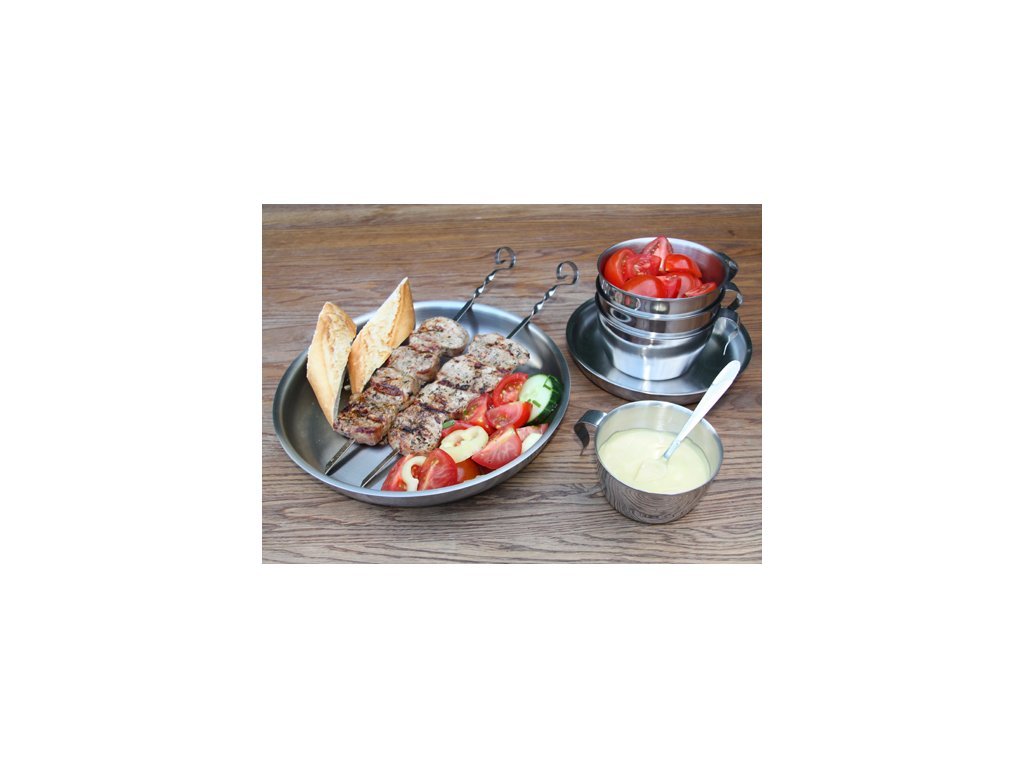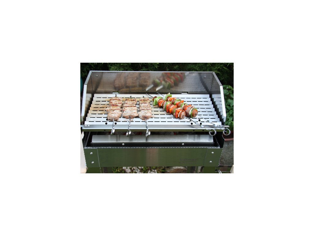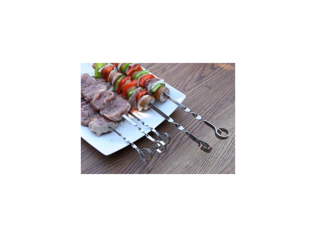 Znáte tu otravu, když se při grilování protáčí na jehle napíchané potraviny – jedna strana je pak spálená a druhá syrová. Tento obvyklý nedostatek většiny jehel jsme odstranili použitím ploché oceli. Aby se pochoutky snadno napichovaly a jehly jednoduše umývaly, jejich povrch jsme navíc vyleštili do vysokého lesku.
