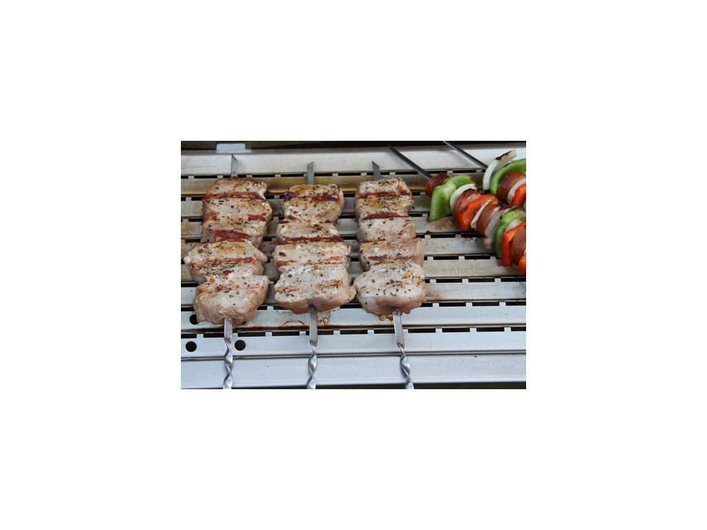 Znáte tu otravu, když se při grilování protáčí na jehle napíchané potraviny – jedna strana je pak spálená a druhá syrová. Tento obvyklý nedostatek většiny jehel jsme odstranili použitím ploché oceli. Aby se pochoutky snadno napichovaly a jehly jednoduše umývaly, jejich povrch jsme navíc vyleštili do vysokého lesku.