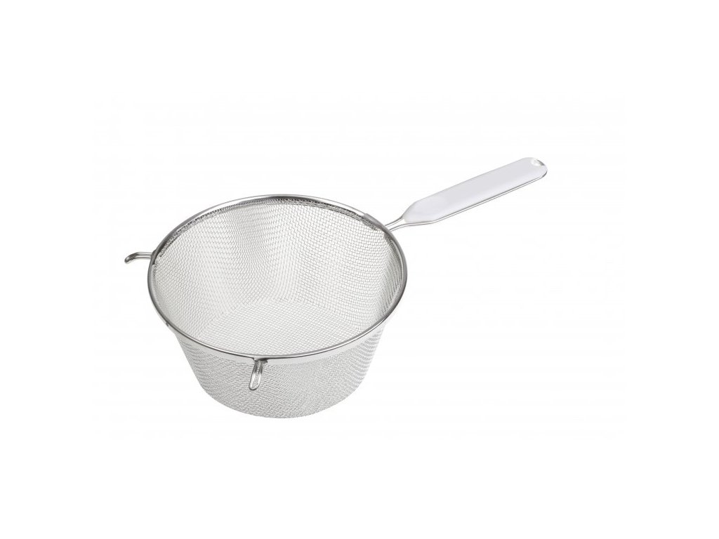 Koš se používá na smaží pomfritů ve fritézách nebo v hrnci Vyroben z ocelového pomfritového tkaniva s oky 2 x 2 mm, plechu na obrubě a drátuGalvanicky leskle pokoveno. Průměr: 20 cm Údržba: Cedník je určen ke krátkodobému styku s potravinami a kapalinami do 5-ti minut. Po použití jej vždy důkladně propláchněte čistou vodou, nechte důkladně oschnout a uložte na suché místo. Na mytí doporučujeme houbičku. Nepoužívejte drátěnky ani písek. Není vhodný do myčky. Výrobek je možno dezinfikovat běžnými dezinfekčními prostředky určenými pro tento druh kuchyňských potřeb. Pro tento proces platí obdobné časové limity a postup jako pro běžné použití. Skladujte jej na suchém místě. Dlouhodobý styk s vlhkem a kapalinami výrazně poškozuje vzhled a zkracuje životnost výrobku. Čím lépe a důkladněji se budete o cedník starat, tím déle vám bude sloužit.