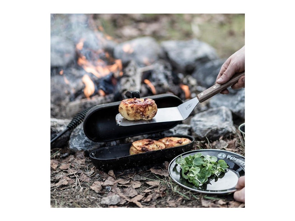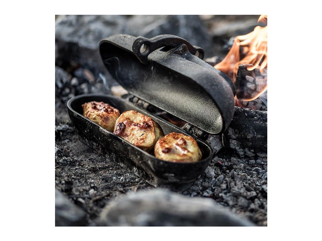 S litinovým pekáčem na brambory můžete připravit brambory a zeleninu s charakteristickou pečenou chutí – ideální příloha k menu na otevřeném ohni. Výborné rozvedení tepla je zajištěno nejen litinou, ale navíc optimálním zakulaceným tvarem. Hrnec můžete položit přímo do ohně. Pro snadnější manipulaci s víkem lze dokoupit zvedák poklice.