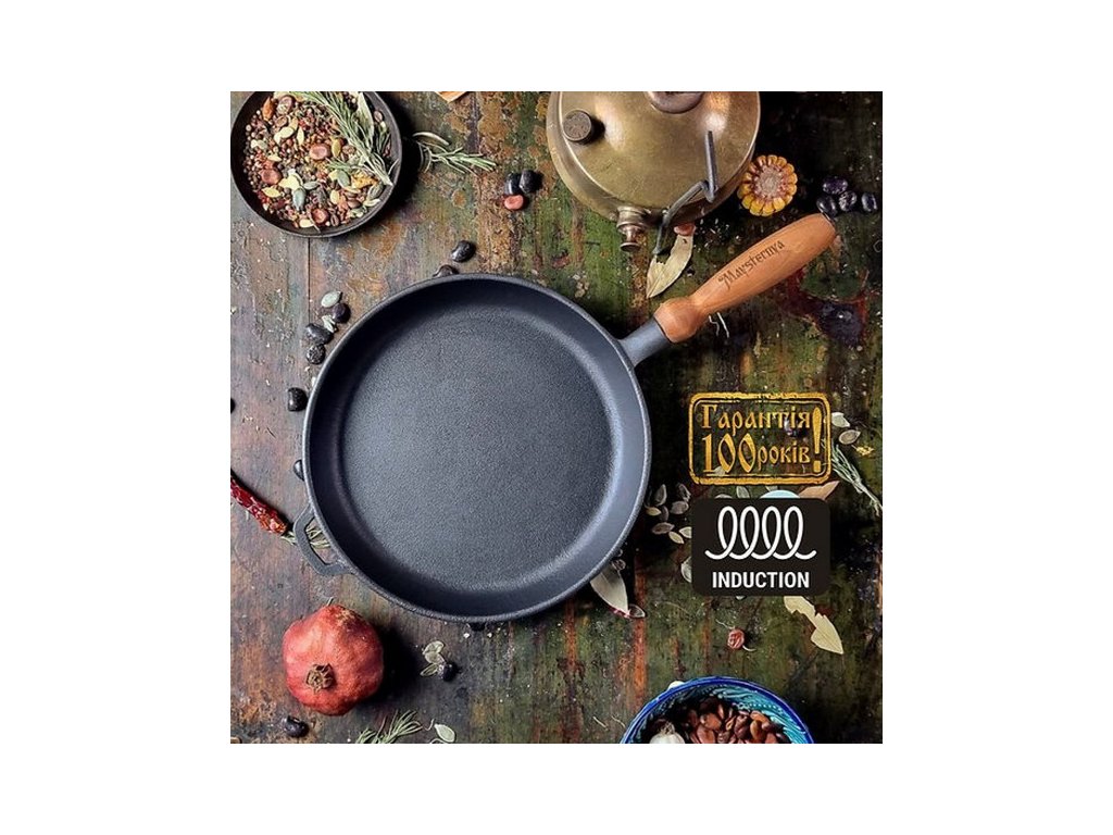 Litinová pánev 26 cm, Maysternya s dřevěnou rukojetí