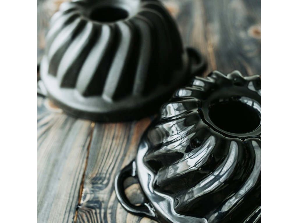 Litinová smaltovaná pečicí forma bábovka Český smalt GOURMETINA SOFIE - Matná černá 22 cm x 10 cm