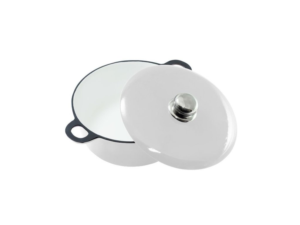 Litinový smaltovaný Hrnec velký + Víko Český smalt GOURMETINA EDUARD - Papírově bílá 25 x 9 cm, 3 l