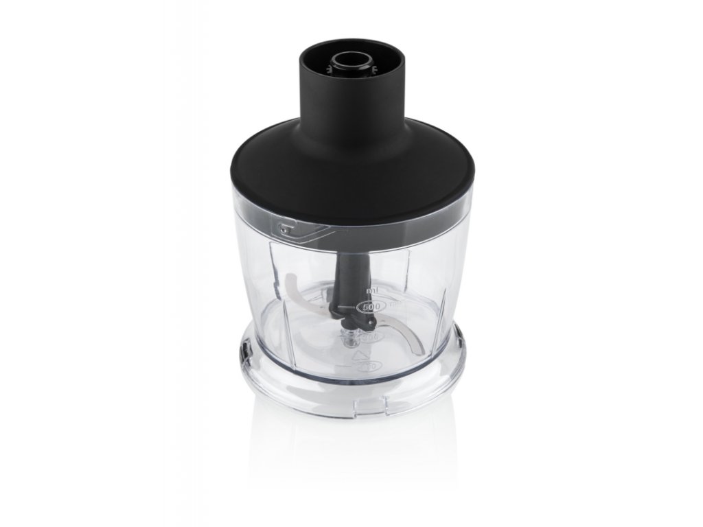 Dalším skvělým pomocníkem vám bude sekáček o objemu 500 ml se srpovitým nerezovým nožem, který si hravě poradí i s tvrdou zeleninou. A pro stabilní, a hlavně bezpečnou obsluhu obsahuje sekáček protiskluzové nožky, díky kterým přístroj neklouže po pracovní desce.