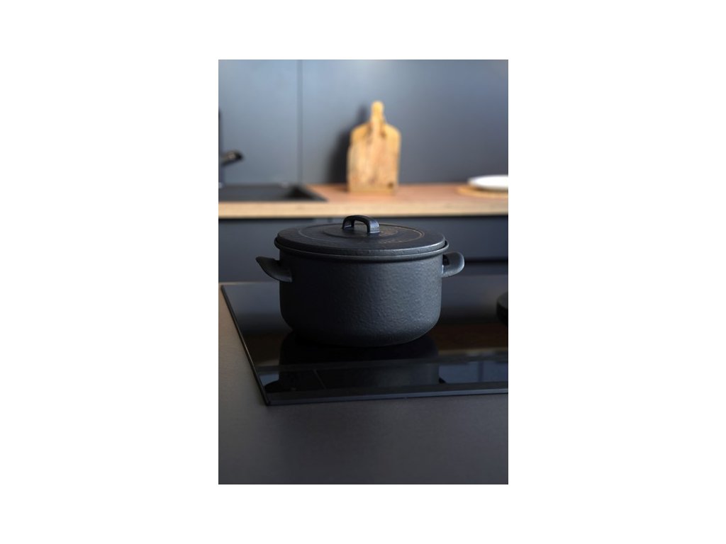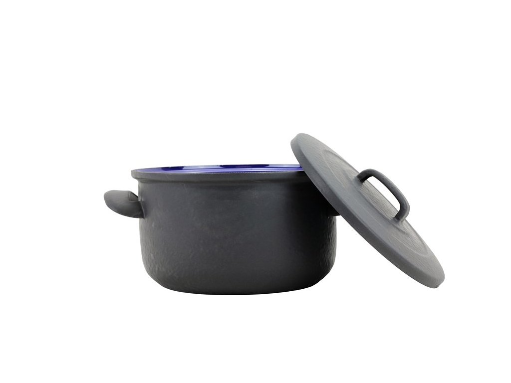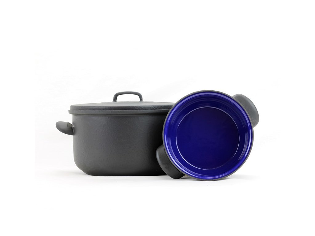 Zatímco na vnější straně nádobí dominuje minimalistickému vzhledu černý matný smalt, vnitřní stranu zdobí elegantní tmavě modrá barva. Tedy charakteristická barva mimořádně kvalitního českého smaltu, kterou si zamilovali kuchaři po celém světě.